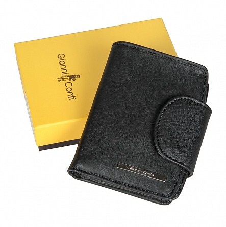 Размер: 12.5 х 9.5 x 3.5 см. Кошелек закрывается клапаном на кнопке, внутри два отдела для купюр, отдел для монет на кнопке, три потайных кармана, шесть кармашков для пластиковых карт, сетчатый карман, три кармана для документов, имеет RFID Protection (защитный слой от считывания карт). Цвет: черный.