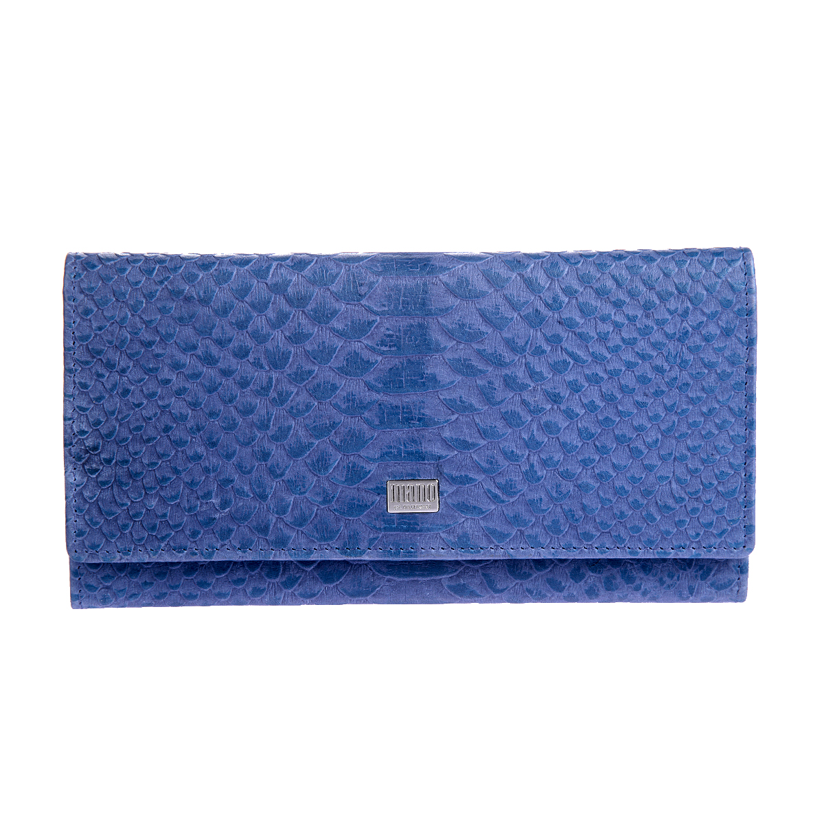 Размер: 18,5 х 10 х 3 см. Кошелек на полную купюру, закрывается широким клапаном на кнопке, внутри два отделения для купюр, отделение для мелочи на молнии, два кармана для бумаг, девятнадцать кармашков для пластиковых карт, сетчатый карман, снаружи на задней стенке два кармана, один из них на молнии. Цвет: синий.