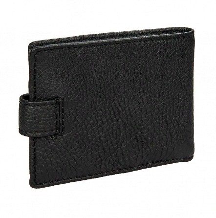 Размер: 12.5 x 10 x 3 см. Портмоне закрывается клапаном на кнопке, внутри два отдела для купюр, отделение для монет на кнопке, два потайных кармана, пять кармашков для пластиковых карт, два кармана для документов, имеет RFID Protection (защитный слой от считывания карт). Цвет: черный.