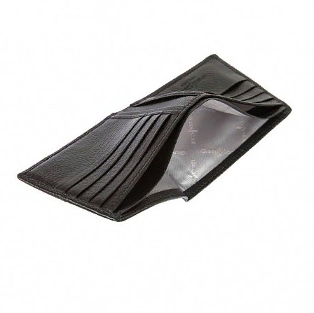 Размер: 11.5 x 9 х 2 см. Портмоне раскладывается пополам, внутри два отдела для купюр, четыре кармана для документов, восемь кармашков для пластиковых карт. Цвет: черный.