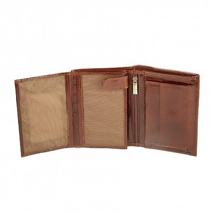 Размер: 13 х 9 x 2 см. Портмоне раскладывается пополам, внутри два больших отдела для купюр, отделение для монет на кнопке, три сетчатых карана для документов, один потайной карман, восемь кармашков для пластиковых карт, один карман на молнии. Цвет: коричневый.