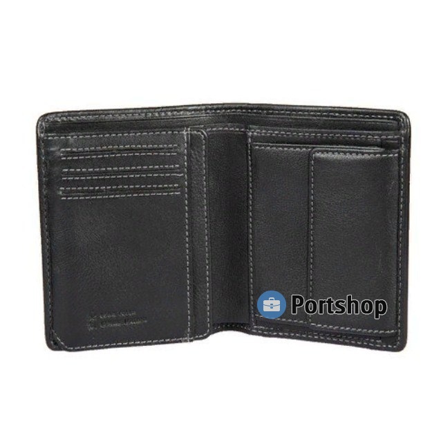 Размер: 12.5 х 10 x 2.5 см. Портмоне раскладывается пополам, внутри два отдела для купюр, отделение для монет, закрывается клапаном на кнопке, сетчатый карман, шесть кармашков для пластиковых карт, четыре кармана для документов, потайной карман. Цвет: черный.