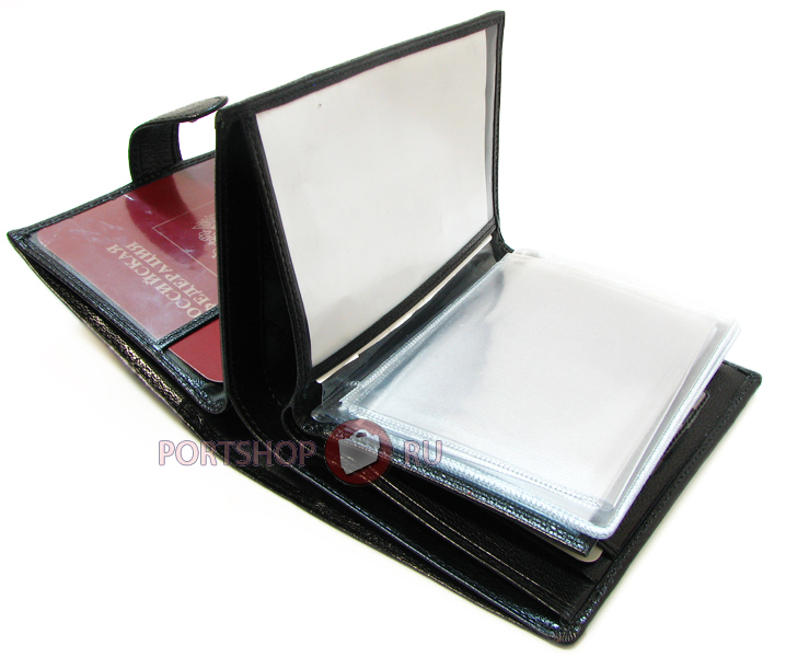 Размер: 14,5 х 10,5 см. Мужское портмоне с вкладышем для автодокументов и паспорта, отделение для купюр, визиток, монетник на кнопке, кармашек для sim-карты и sd-карты. Цвет: черный.