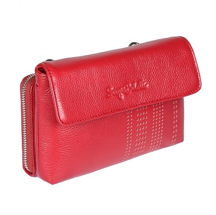 Размер: 20 x 13 x 7 см, высота ручек: 62 см. Сумка закрывается клапаном на магнитной кнопке, внутри отдел, в котором карман на молнии, кармашек для мелких предметов, на задней стенке съемное портмоне на магнитных кнопках, закрывается на молнию, размер 19 х 10,5 х 2,5 см, внутри два отдела для купюр, три кармана для документов, двенадцать кармашков для пластиковых карт. Цвет: красный.